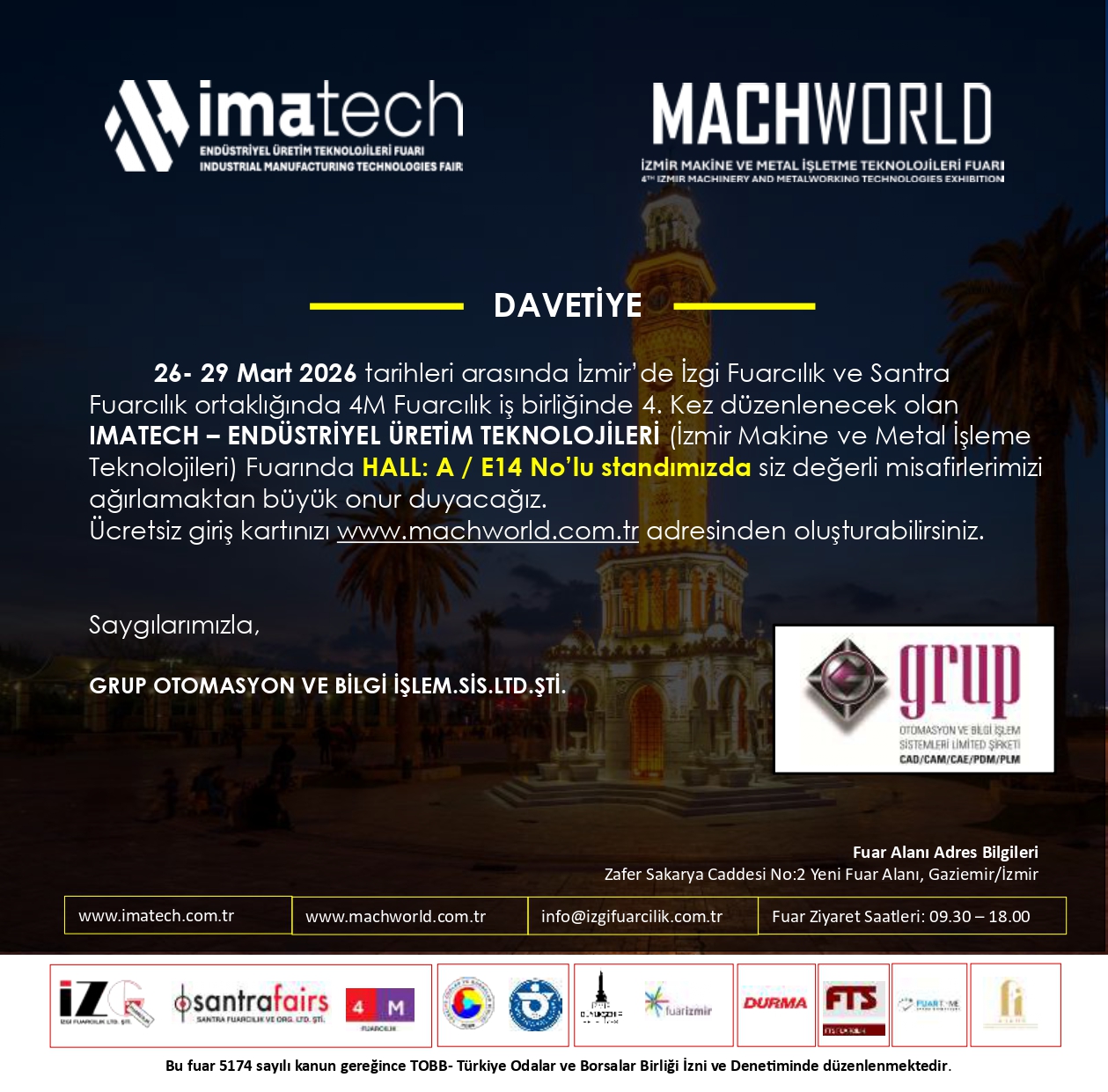 IMATECH 2026 (Endüstriyel Üretim Teknolojileri) fuarında; ZW3D CAD/CAM/CAE , ZWTeammate PDM , ZWCAD ve diğer ürünlerimizle standımızda olacağız. Bekleriz !