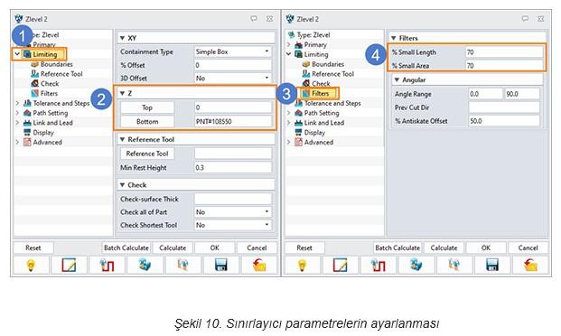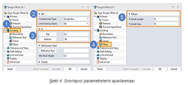 Sınırlama menüsünde Z ekseninin işleme aralığını ve Filtreler’de takım yollarının filtreleme aralığını ayarlayın.