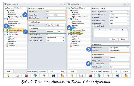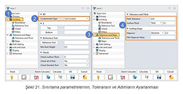 Sınırlama menüsünde Kapsama Türünü, ardından Tolerans ve Adımlar menüsünde ilgili Tolerans ve Kalın ve Kesme Adımları parametrelerini ayarlayın.