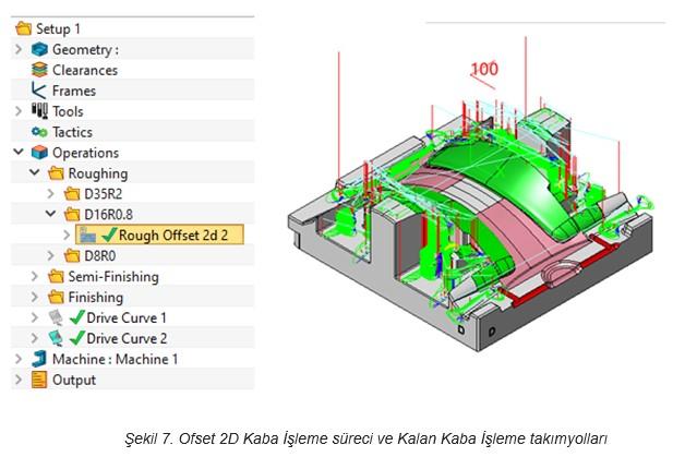 Kaba işleme, gereksiz malzemeleri olabildiğince hızlı bir şekilde kaldırmayı amaçlayan Ofset 2D Kaba İşleme ve Kalan Kaba İşleme’yi içerir.