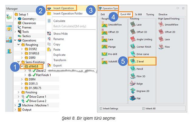Yarı Finiş kullanılan ilk takım kalıbın şekline göre D16R0.8 takımıdır. D16R0.8 adlı klasöre sağ tıklayın ve İşlemi Ekle öğesini seçin. İşlem Tipi iletişim kutusundaki Hızlı Freze sekmesi altında Z seviyesini seçin.