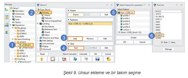 Z seviyesine çift tıklayın, Birincil menüde Parçayı bir unsur olarak ekleyin ve D16R0.8 takımını seçin.