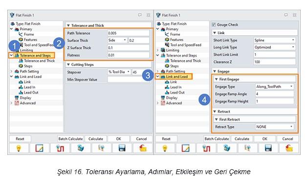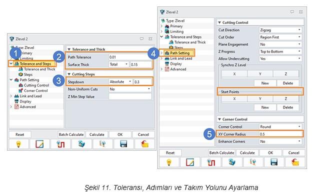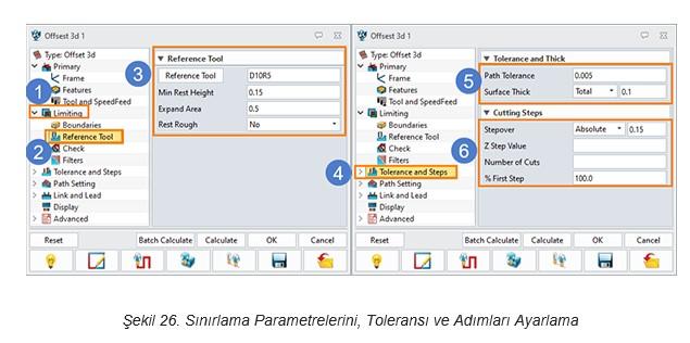 Set Referans Aracı altında parametreleri sınırlandırılması, sonra gelen Tolerans ve Kalın ve Adımlar Kesme parametreleri Tolerans ve Adımlar menü.