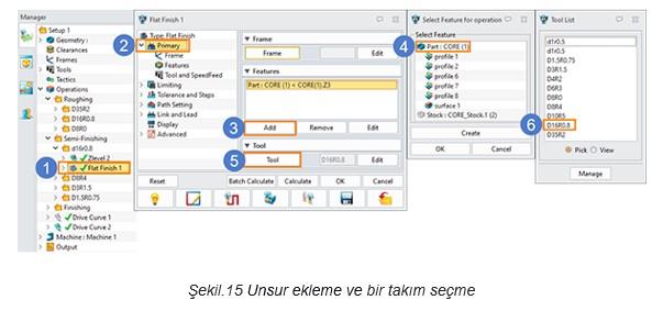 Düz Finiş öğesine çift tıklayın, Birincil menüde unsur olarak Parçayı ekleyin ve D16R0.8 takımını seçin.