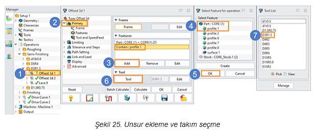 Ofset 3D Kesme işlemine çift tıklayın, parçayı ve profili Birincil menüde unsurlar olarak ekleyin ve D3R1.5 takımını seçin.