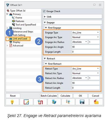 Adım 4: Link and Lead’de Engage ve Retract Parametrelerini Ayarlayın
