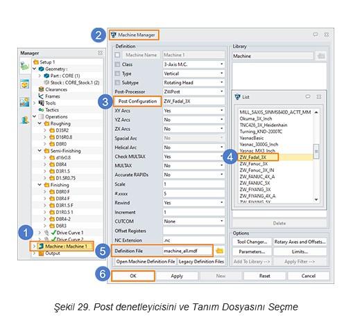 Machine’e çift tıklayın, Machine Manager’da Post Configuration’a tıklayın, listeden ilgili post configuration controller’ı seçin ve tanım dosyası olarak [machine_all.mdf]’yi seçin.