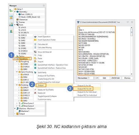 Belirtilen tüm takım yollarını oluşturduktan sonra, işlemeyi başlatmak için bunları NC kodları olarak çıktı alın.
